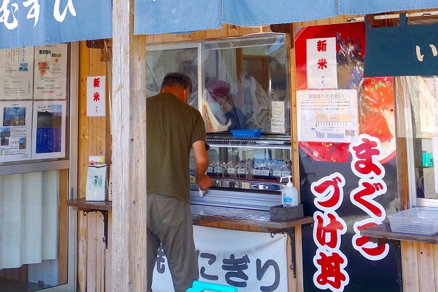 「うおぬま倉友農園」のおにぎり屋には、炊きたて、握りたてと思われるおにぎりの数々が並んでいて、地元の皆さんが次々に立ち寄っては購入していきます。値段も100円台のものが多く、コンビニとほとんど変わりません。