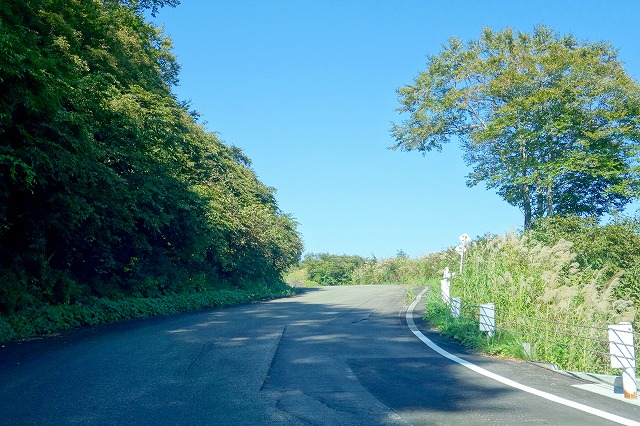 護国観音から北側の道は、小さなアップダウンをしながら痩せた尾根上を繋いでいくような道になり、細い部分もありますが、すべてガードレールが設置されているので、運転に不慣れな方でも心配はないと思います。