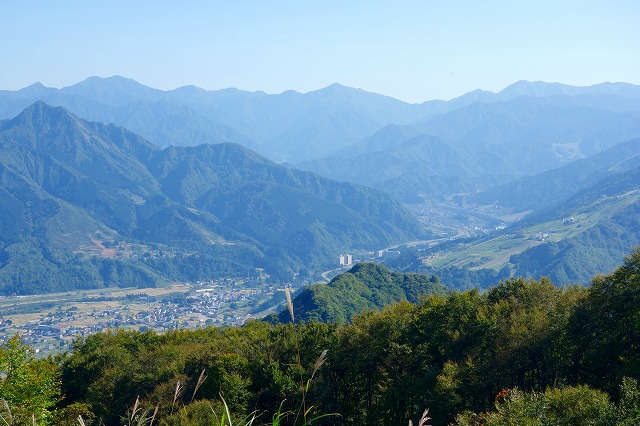このあたりは、魚沼盆地とは反対側の斜面を登っていきますが、稜線が近づいてくると、右側に魚沼盆地が見渡せるようになってきます。