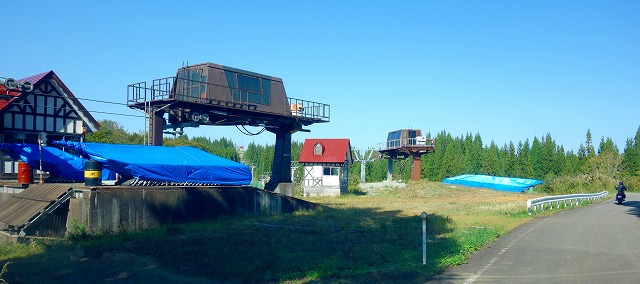 スキー場周辺にはいくつかの道が通っていますが、案内に沿って進みます。再びリフト乗り場があらわれると、スキー場はここで終わりです。
