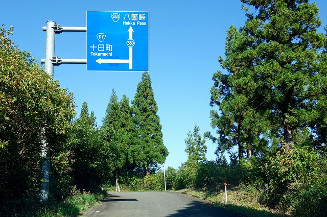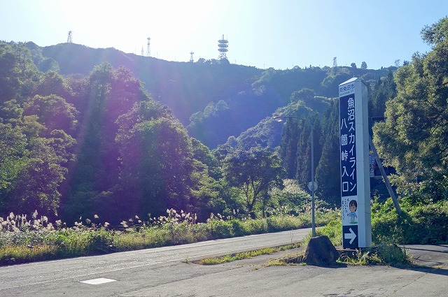 坂道を下りきった県道560号線との合流点に「八箇峠入口」の看板が立っていて、魚沼スカイラインのドライブは終了です。
