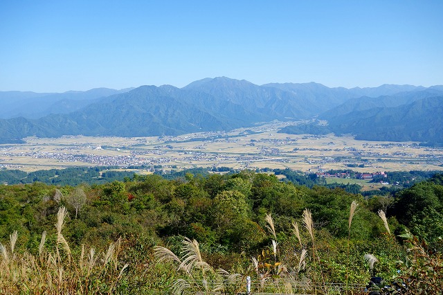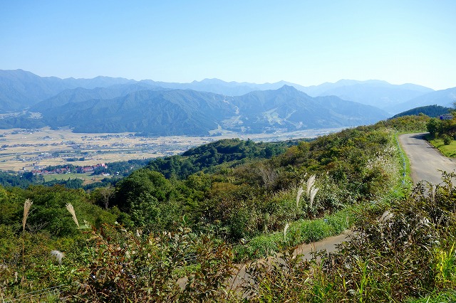 盆地の全景から湯沢方面まで見渡せる、一番変化に富んだ景色が見られる展望台かもしれません。