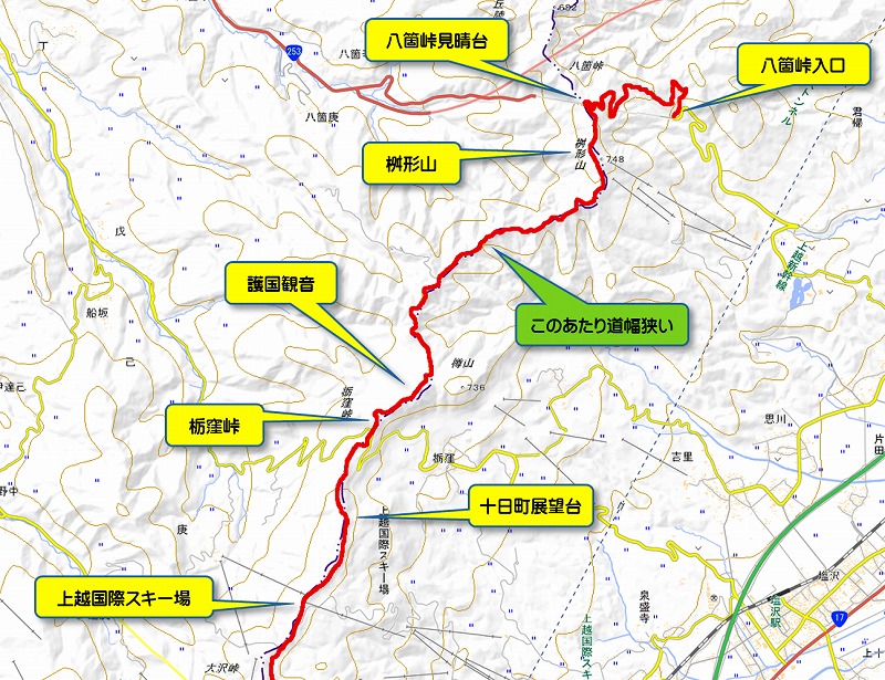 ルートの最終版ですが、この周辺にはすれ違いの難しいような狭い部分もあるので、まだ注意が必要です。