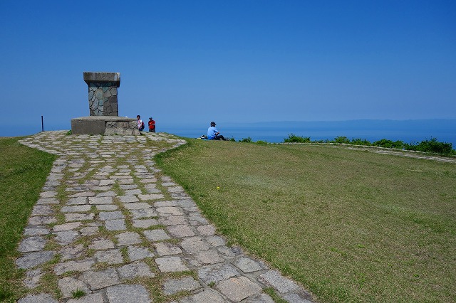 大平公園からは、360度の展望が広がります。すぐ南には、電波塔が林立する弥彦山が間近に見えます。日本海はどこまでも青く、新潟平野は霞んで見えなくなる彼方まで広がっていました。