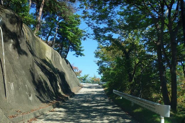 「万葉橋」を通って千曲川を渡り、直進すると山の麓の「城山入口」の信号交差点に出ます。ここを真っ直ぐ進むと山道になり、荒砥城方面へ登っていきます。
