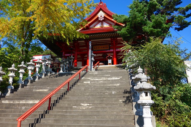 細く急な坂道を折り返して登っていくと、大きな建物があらわれます。この建物は「善光寺大本願別院」で、麓からもよく見えています。