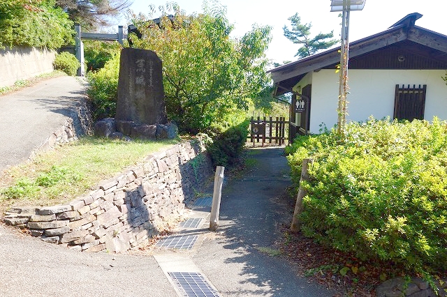 この建物群の間を通り抜けて登っていくと、「荒砥城跡」の看板があらわれます。