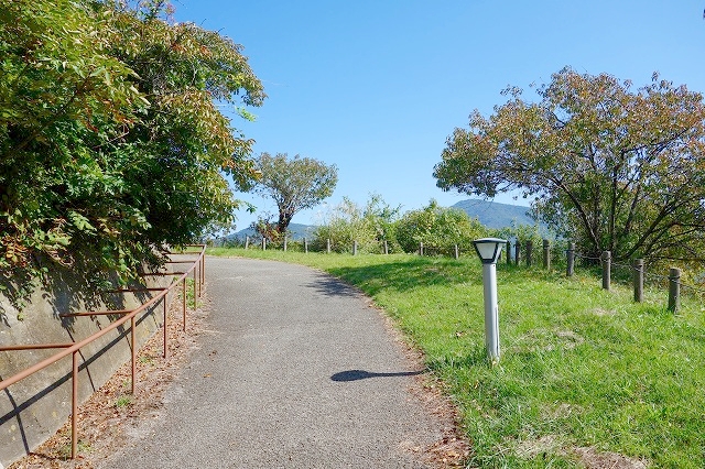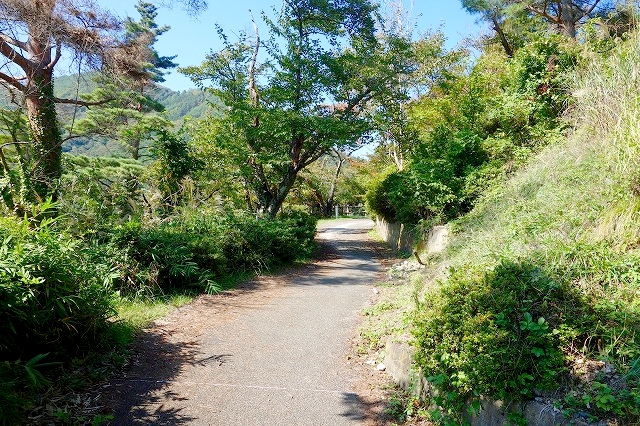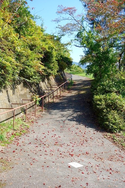 車を駐めたら、城跡まではゆるやかな坂道の登りです。できれば歩きやすい靴で行った方がよいと思います。