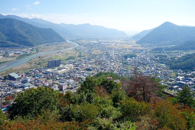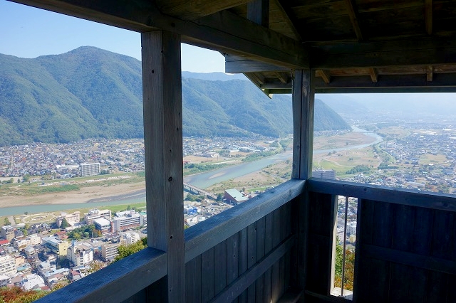 千曲川に沿って、上田方面から長野方面まで広く見渡すことができ、ここに城が造られたのも納得の景観です。