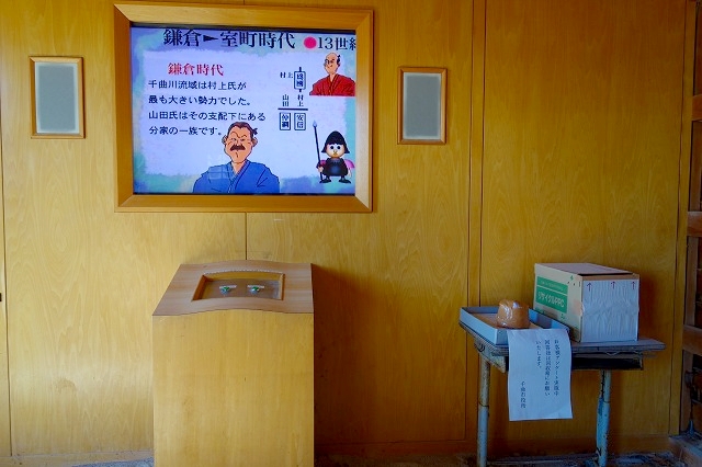 二の郭にあるもう一つの建物は、内部が二室に分かれており、歴史資料の展示スペースと映像資料の鑑賞スペースになっています。
