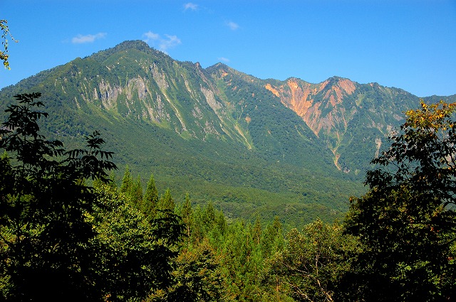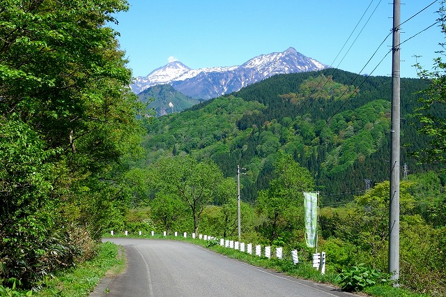 国道へ戻る道からは、「雨飾山」や噴煙を上げる「焼山」など、頸城の山々もよく見えます。