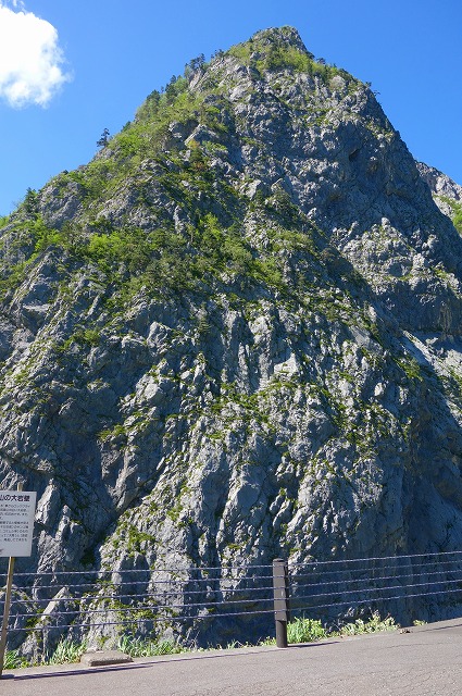 河原からいきなり巨大な岩の塊がそそり立っている姿は、そのスケールの大きさも含めて、他では見ることができない独特なものです。
