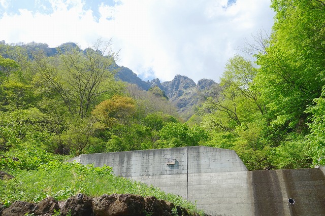 長野県栄村秋山郷に聳える険しい岩山で、間近に迫るその姿はなかなかの迫力です。