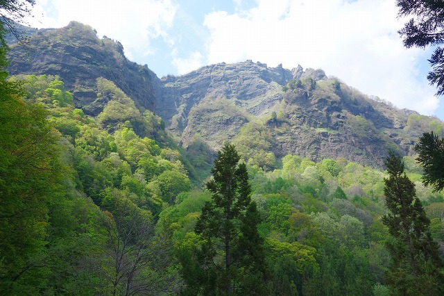 アクセスの不便さもあり、岩登りのフィールドとして注目を浴びることはありませんでしたが、迫力ある岩場が目前に迫ります。