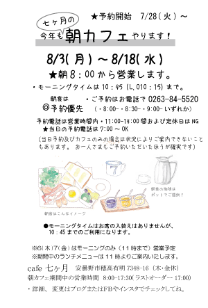 ところで現在、夏恒例の「朝カフェ」が、8月3日(月)から8月18日(水)まで行われています。
