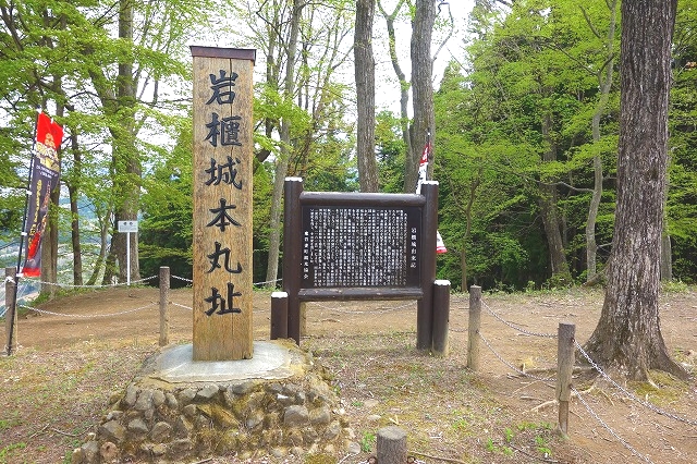 一段高い「櫓台」に、「岩櫃城本丸址」の標柱と説明板がありました。