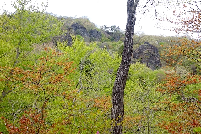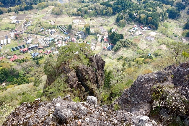 林立する岩峰越しに見る里の景色は、なかなか高度感があります。