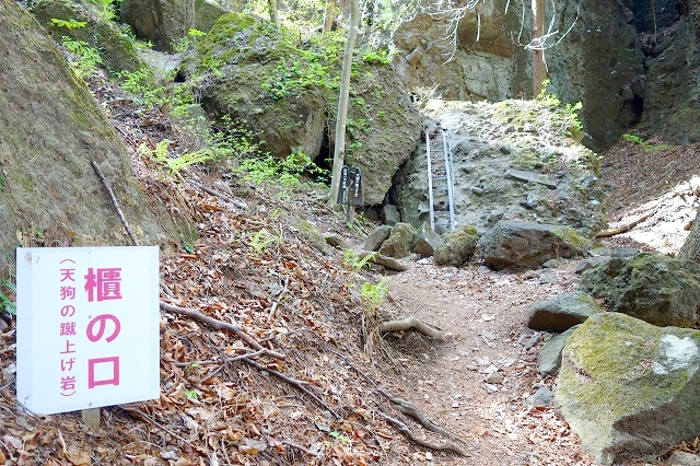 六合目からはいったん下って、櫃の口(天狗の蹴上げ岩)で「沢通り」に合流します。