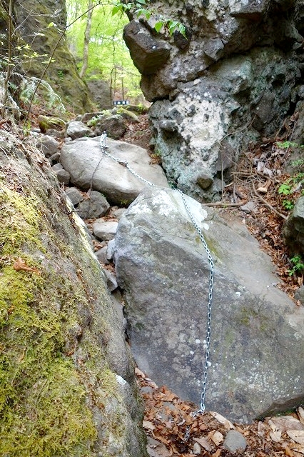 ここからは大きな岩の間を沢沿いに登って行きますが、急な岩場などにはハシゴや鎖が設置されています。