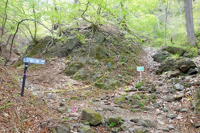 六合目の分岐から沢伝いに下りていきます。
