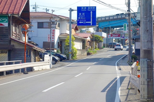 高架の国道145号線の下をくぐり、山の方へ入っていきます。