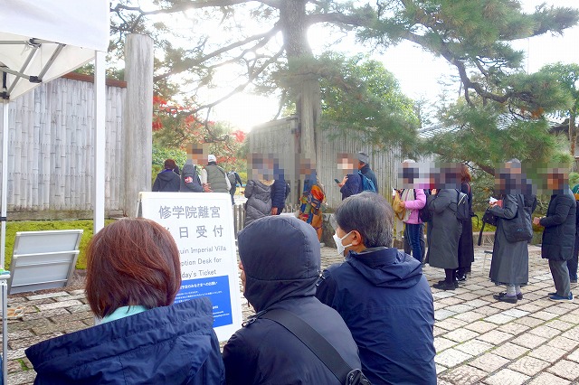 修学院離宮の入口前に到着したのは、ちょうど8:00でした。この時点ですでに10名ほどの方々が並んでいました。