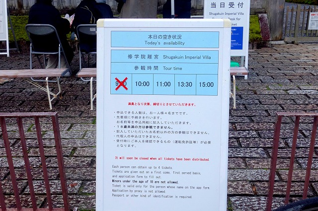 整理券の配布は予定人数がいっぱいになると終了しますが、この日は50人も並んでいるようには見えなかったので、参観時間がいつでもよければ9時過ぎに来ても予約が取れたのかもしれません。