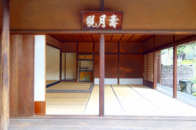 紅葉の庭園を進むと「壽月観」があらわれます。