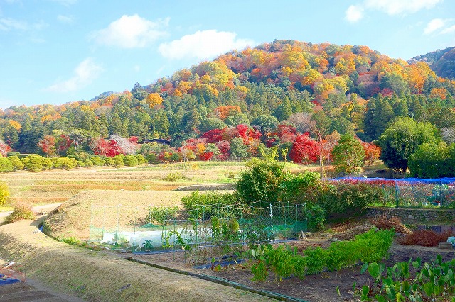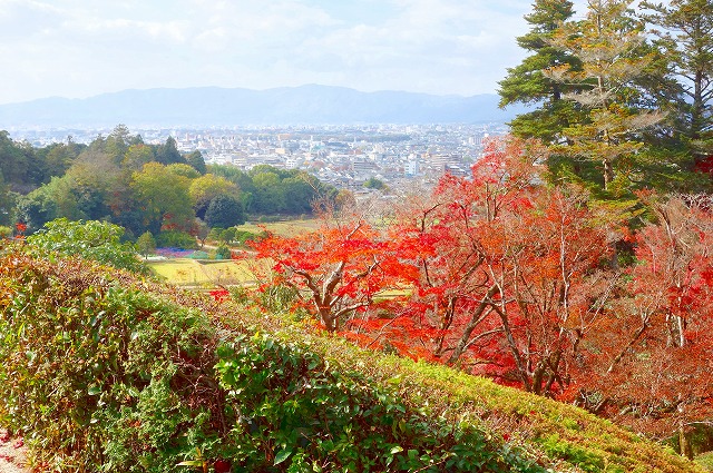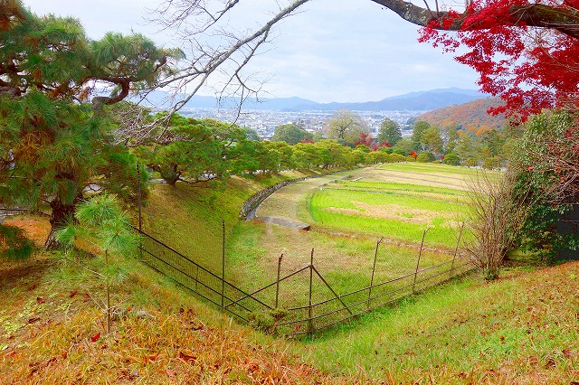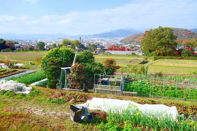 周囲には、京都の街を見下ろす田園地帯が広がっています。
