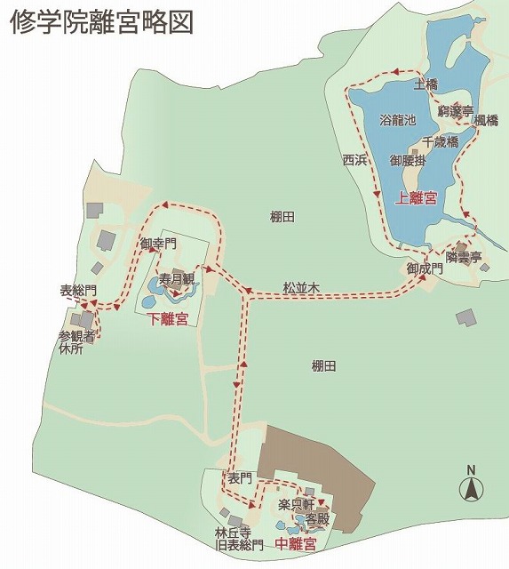 見学の順路は「下離宮」→「中離宮」→「上離宮」の順番で進みます。