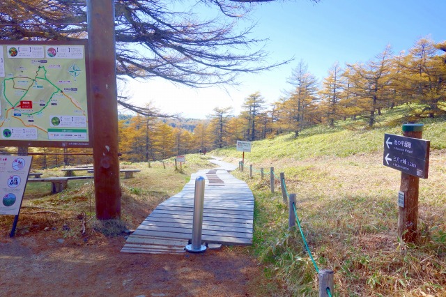 池の平インフォメーションセンターの前を通り過ぎ、東屋のある「コマクサ峠」からそれぞれのハイキングルートに入っていきます。
