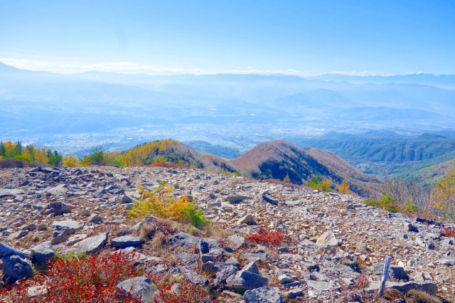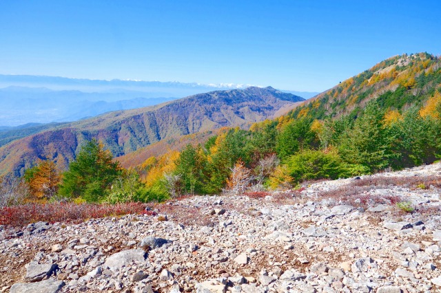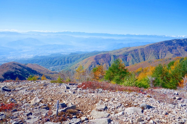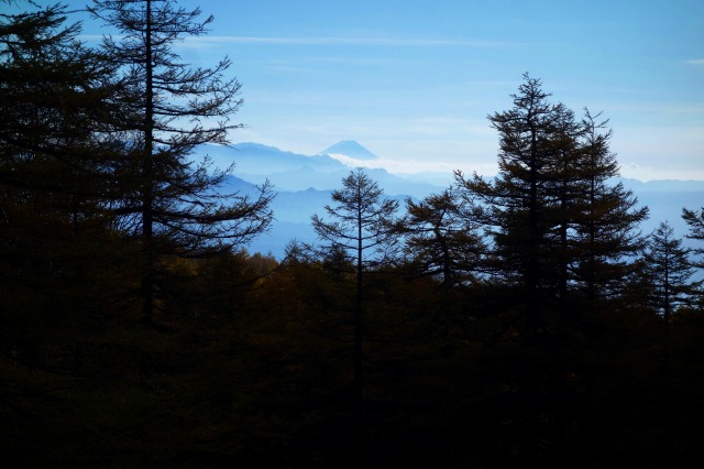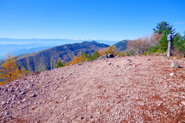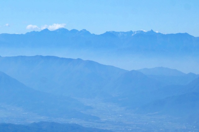 こちらの稜線からは、南方向から西方向にかけて遮るものが何もなく、富士山から白馬岳まで続く大展望が広がっていました。