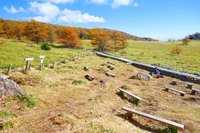 時間的には、火口原の湿原周辺だけなら1時間、外輪山を半周しても2時間程度あれば歩ける手軽な距離感です。体力に自信のない方でもあまり抵抗なく歩けると思います。