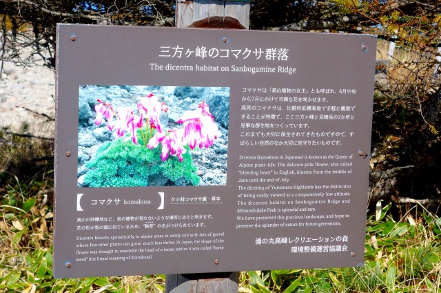 標高は2000mほどなのですが、3000m級の高山帯でしか育たない植物がたくさん見られ、周辺にはコマクサの群生地などがあるそうです。