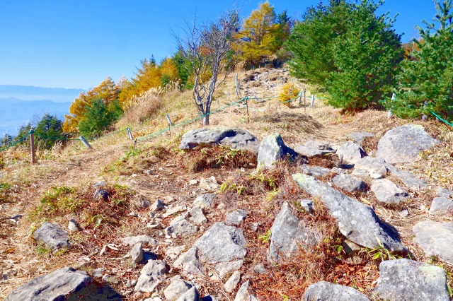 再び分岐に戻り、「見晴歩道」と呼ばれる稜線の道を進んでいきます。