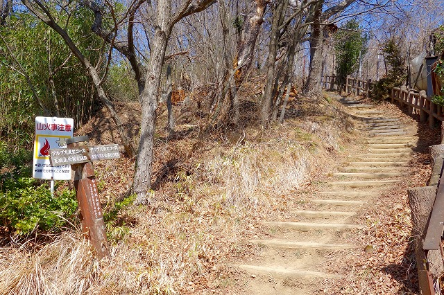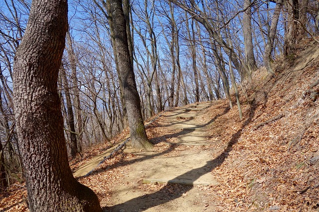 葉を落とした木々の間を、早春の日差しを浴びながら登っていきます。