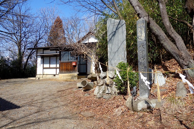 丘を越えて下っていくと、小さな社が祀られた十字路に出て、この山稜を越える道が横切っていきます。
