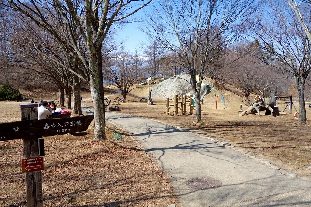 道は途中から登り坂になり、登り切ると「森の入口広場」に戻ってきます。
