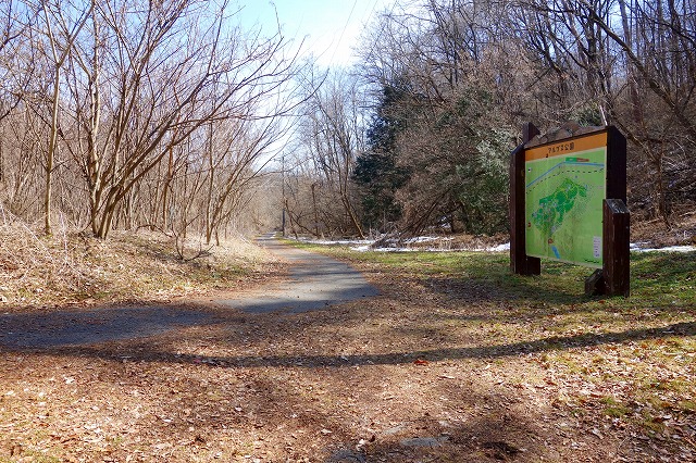 ここは公園の境界ですが、この先も「城山遊歩道」は続いているようで、案内板が立っていました。