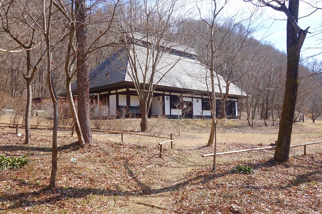 ここは「森の里広場」で、この建物は「古民家体験施設」のようですが、冬季で閉鎖されていました。(3月21日から開放とのことです)