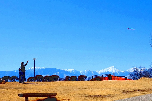 アルプス公園は遊具も充実しており、乗り物や小さな動物園のような施設もあって、子ども連れにもよい場所だと思います。早春の公園はのどかな雰囲気で、市民の憩いの場という感じでした。