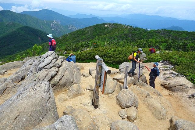 山頂は岩の露出した見晴らしの良い場所でした。金峰山の五丈岩がよく見えます。